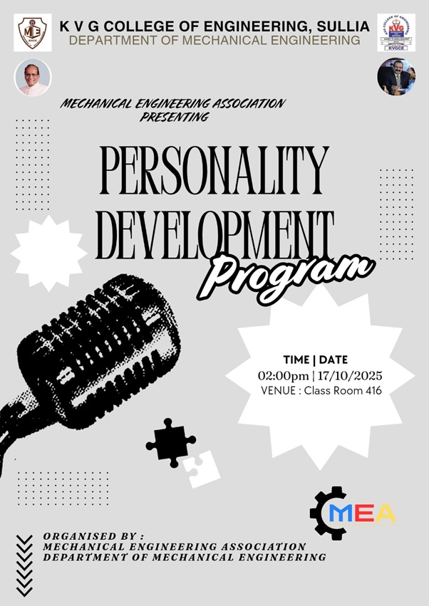 On October 17, 2025, the Mechanical Engineering Association (MEA) of K.V.G. Engineering College organized a Personality Development Program along with a “Pick and Speak” competition.