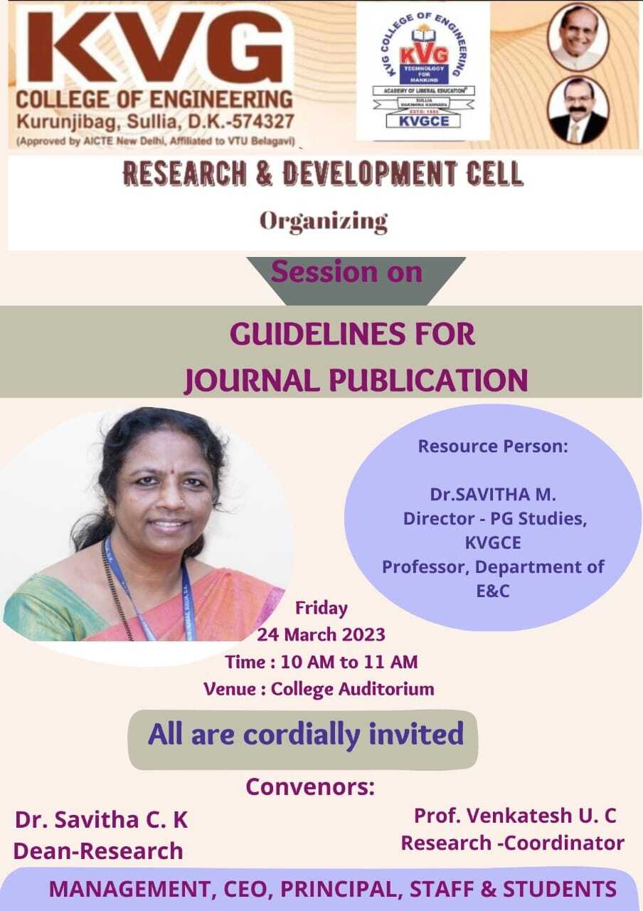 The KVG College of Engineering incorporated a multidisciplinary approach to expand the boundaries of human knowledge through research. Research culture is adopted in the fields of science, technology, and management, which is actively executed by the faculties and students. The research is obviously evidenced in the form of publications and the fund received by funding agencies for innovative initiatives. The institution must have a solid research foundation in addition to effective teaching and learning approaches in order to reach the global norms. The institution was established the Research Cell in 2004 to promote, monitor and address the research activities at College.