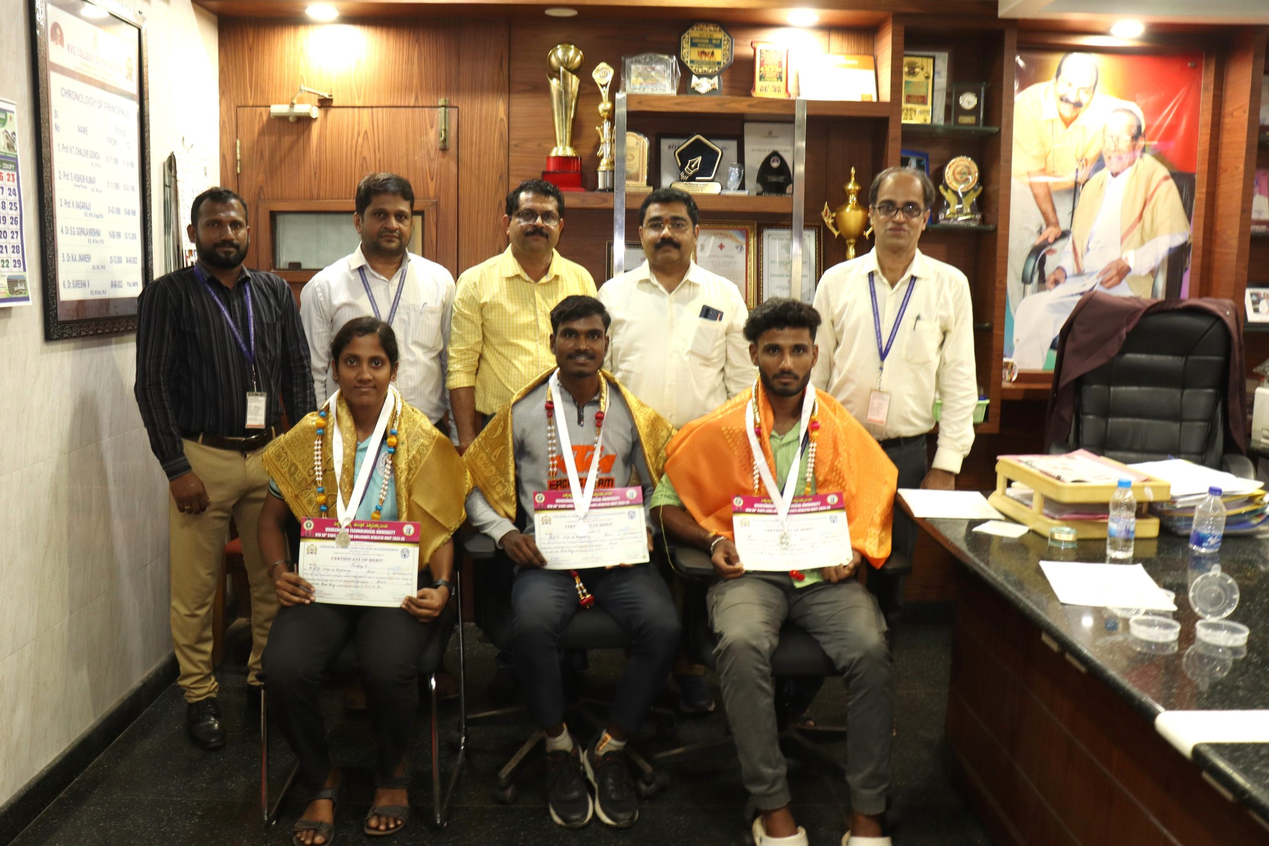 • Mr. Tishan A.M, a student of the CS&E department, won hat-trick gold medals in the 5000 meters, 10,000 meters, and 21-kilometer half marathon at the 25th VTU State Level Athletic Meet, held at Chamundi Vihar Stadium, Mysuru, from 26th to 29th June 2024.