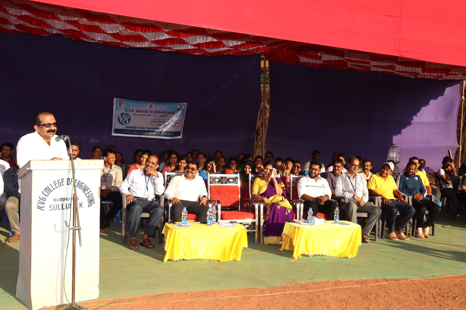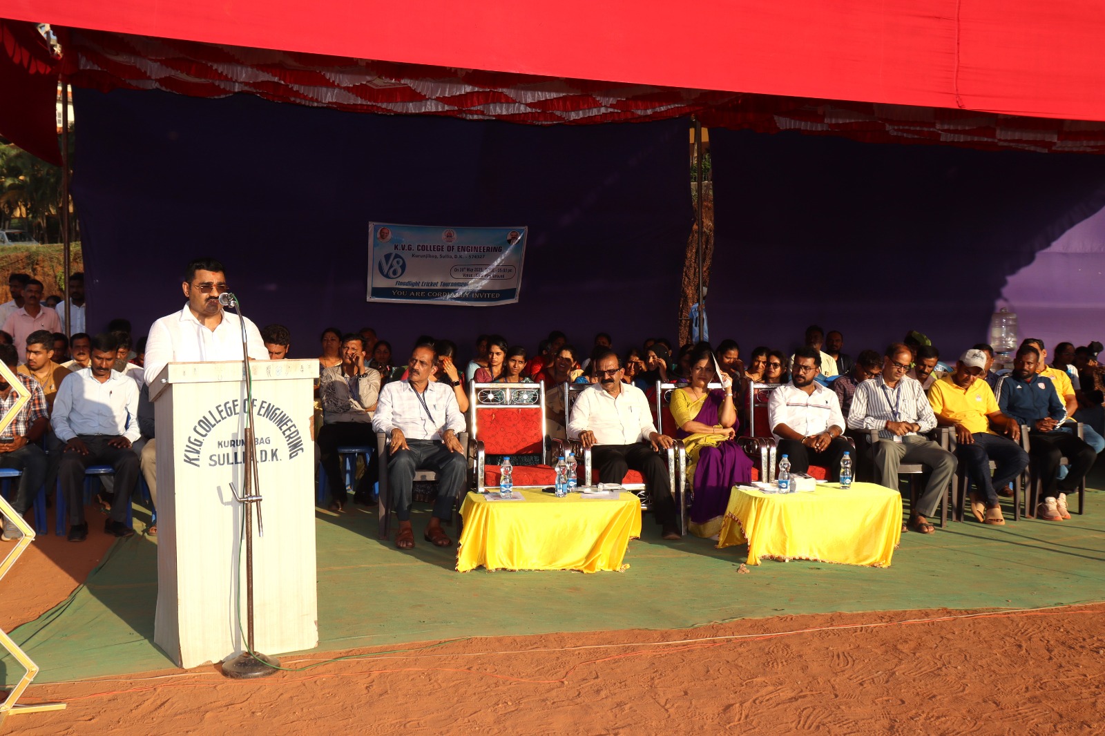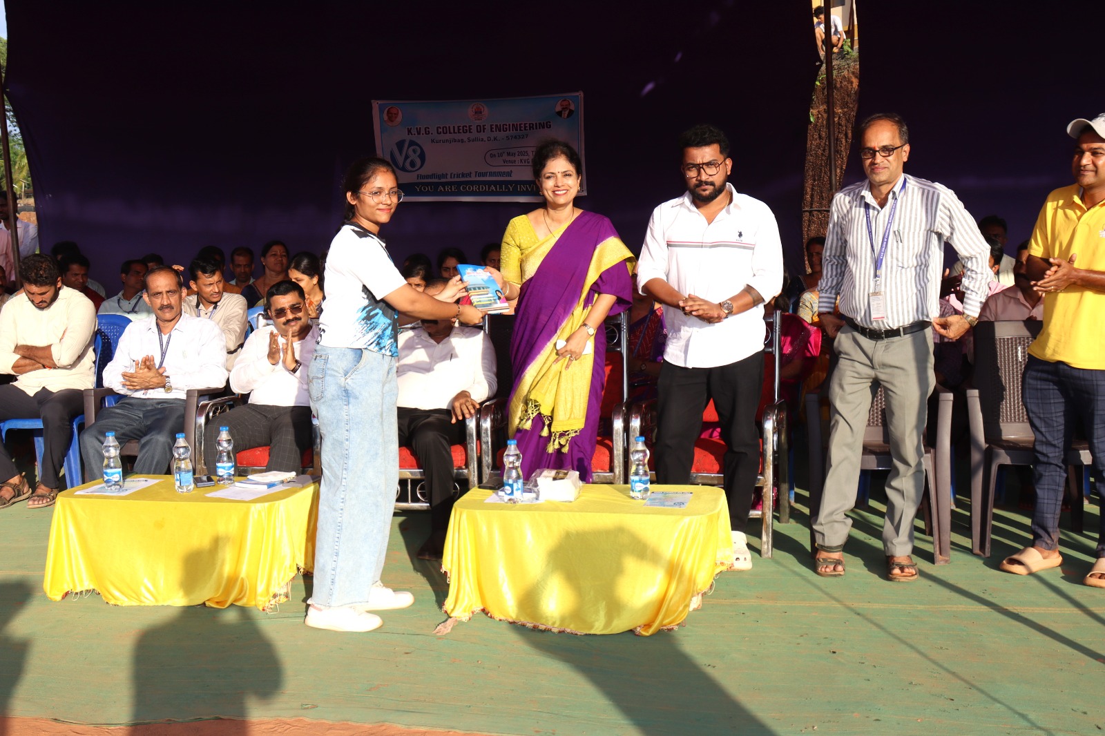 • The V8 Flood Light Cricket Tournament was conducted on 10th May 2024 at KVG Playground. It was inaugurated by Mr. Vinup Mallara, Director, TAPCMS, and Kollamogaru, Harihara Society. A total of 26 teams participated, with the V8 winners being the Department of CS&E – AI&ML team, and the Runners-up being the Department of Mechanical Engineering Team.