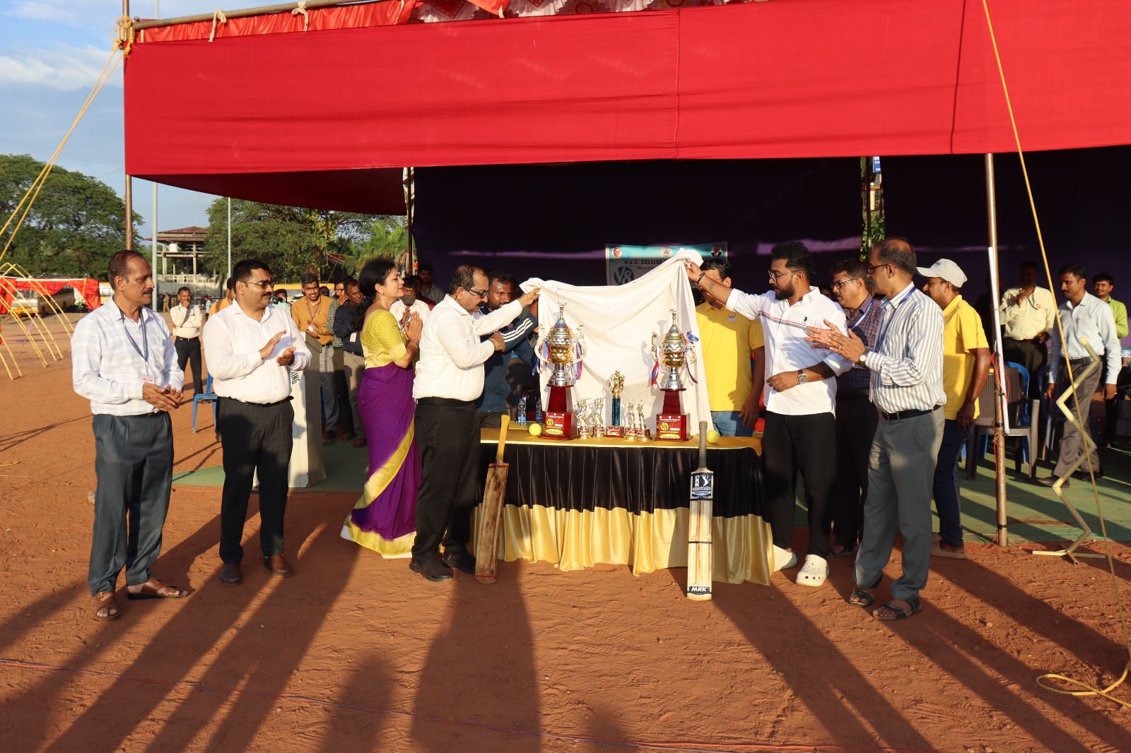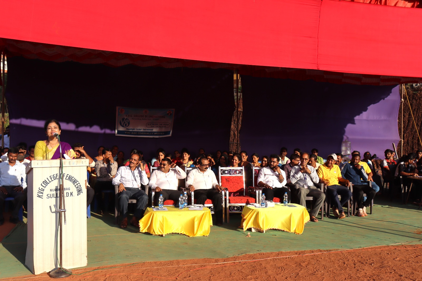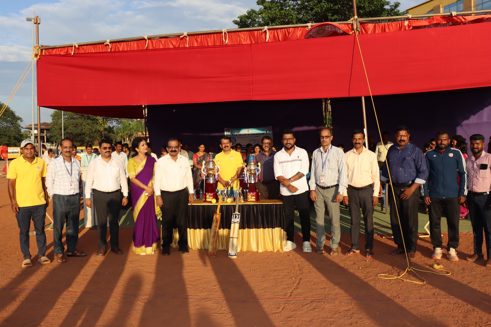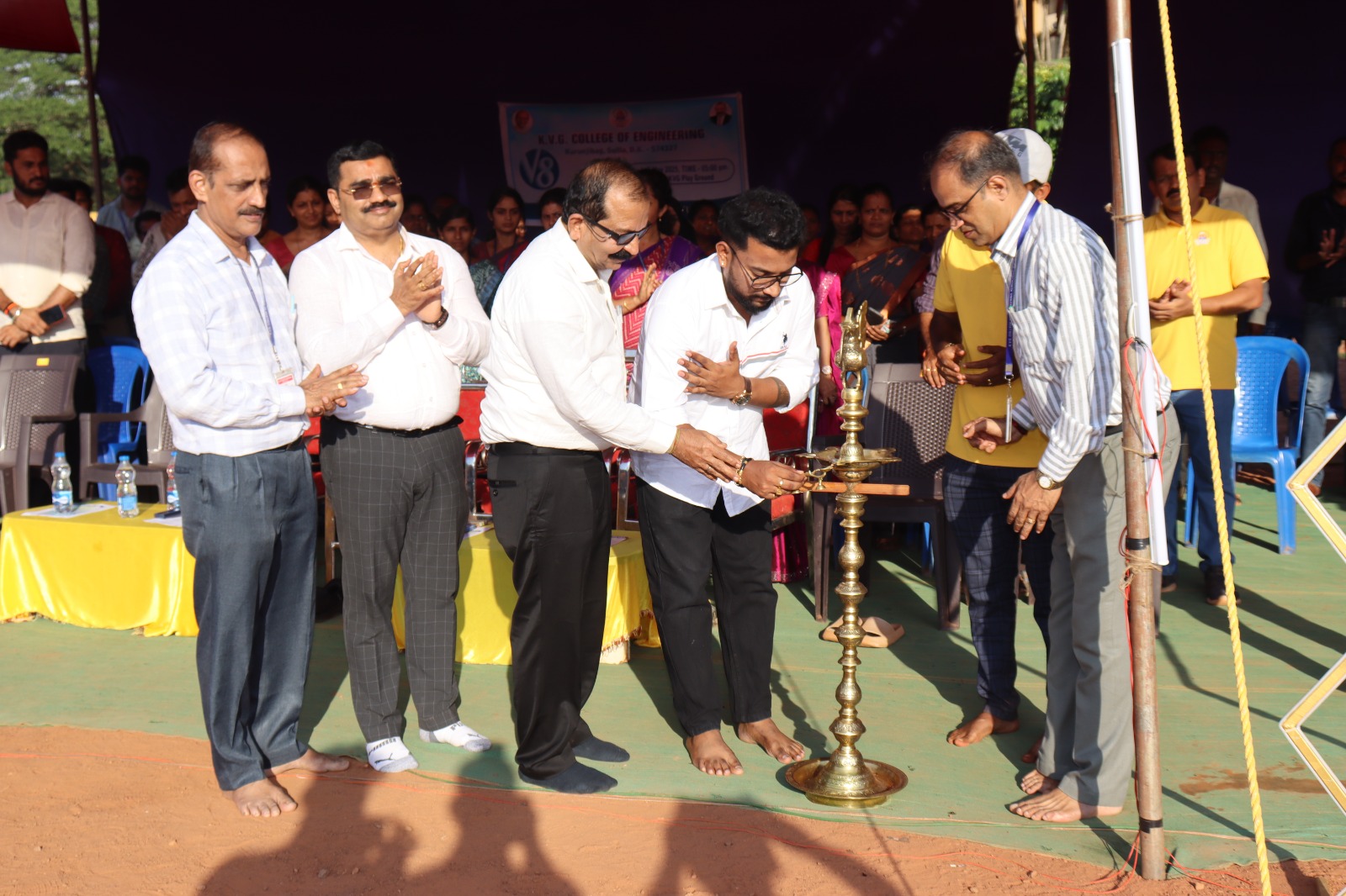 • The V8 Flood Light Cricket Tournament was conducted on 10th May 2024 at KVG Playground. It was inaugurated by Mr. Vinup Mallara, Director, TAPCMS, and Kollamogaru, Harihara Society. A total of 26 teams participated, with the V8 winners being the Department of CS&E – AI&ML team, and the Runners-up being the Department of Mechanical Engineering Team.